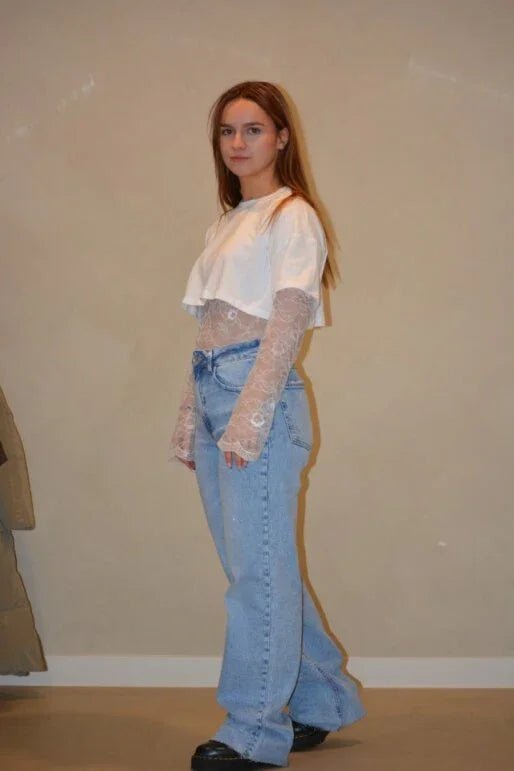 Witte met Kanten Top en Lange Mouwen