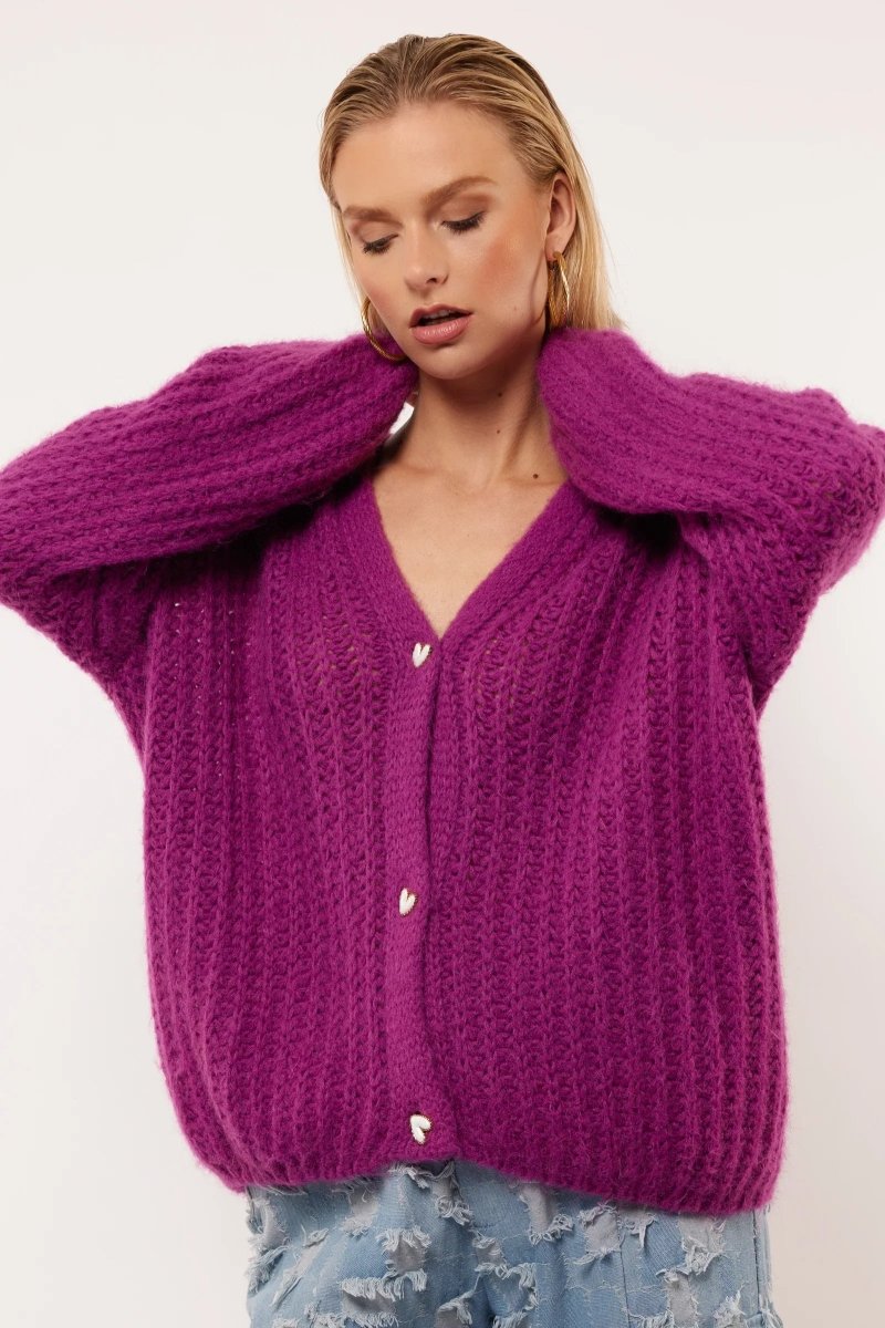 Ontdek de Florin Cardigan van Fluresk, een stijlvolle en comfortabele aanvulling op je garderobe. Deze paarse gebreide cardigan straalt vrouwelijke charme uit dankzij de hartvormige knopen en het zachte breisel. Met zijn losse pasvorm en trendy ontwerp is deze cardigan perfect voor elke gelegenheid, van casual dagen tot chique avonden. De Florin Cardigan is een ware blikvanger die je met gemak kunt combineren voor een modieuze en veelzijdige look.