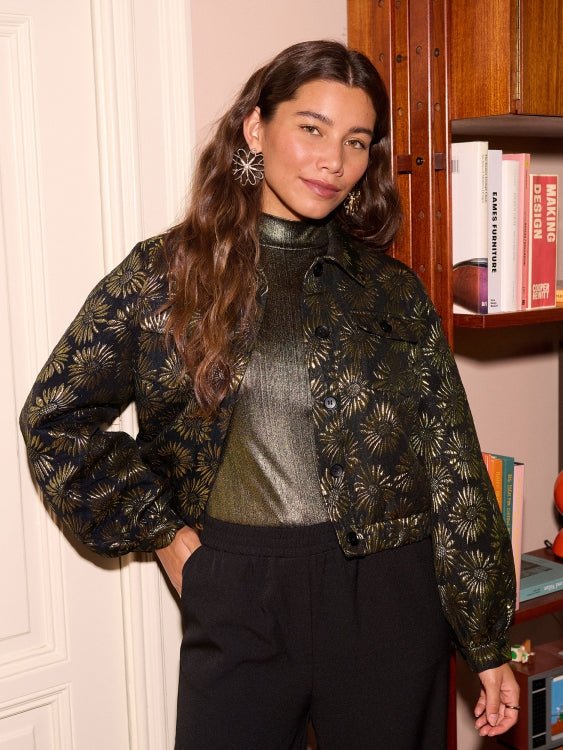 Voor een chique en stijlvolle outfit combineer je het Floria jasje met de Navy pants van Lofty Manner of de Saffron pants van Fluresk. Door het zwart en goud te combineren creëer je een chique kleurencombinatie.