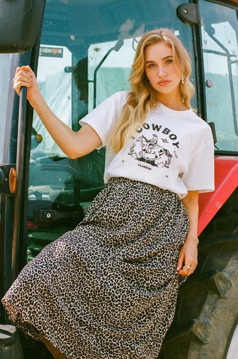 Maak een fashion statement met de Hattie Skirt van Fluresk, een stijlvolle maxi-rok met een tijdloze luipaardprint. Deze lange rok combineert vrouwelijkheid en stoere flair, waardoor hij geschikt is voor elke gelegenheid. Of je nu kiest voor een casual look overdag of een chique outfit voor een avondje uit, met deze rok creëer je moeiteloos een trendy uitstraling.
