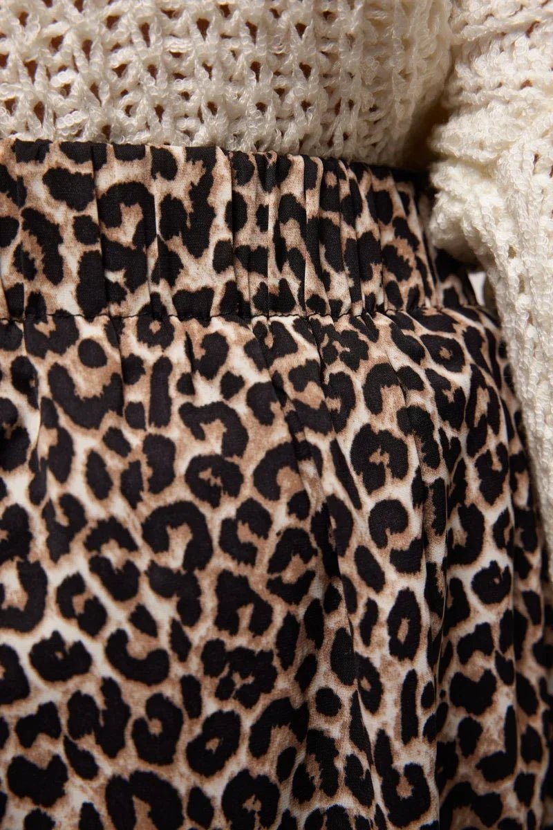 De luipaardprint blijft een populaire keuze in de modewereld en is gemakkelijk te combineren. De warme bruintinten geven de rok een luxe uitstraling, waardoor hij geschikt is voor zowel een casual als een chique look.