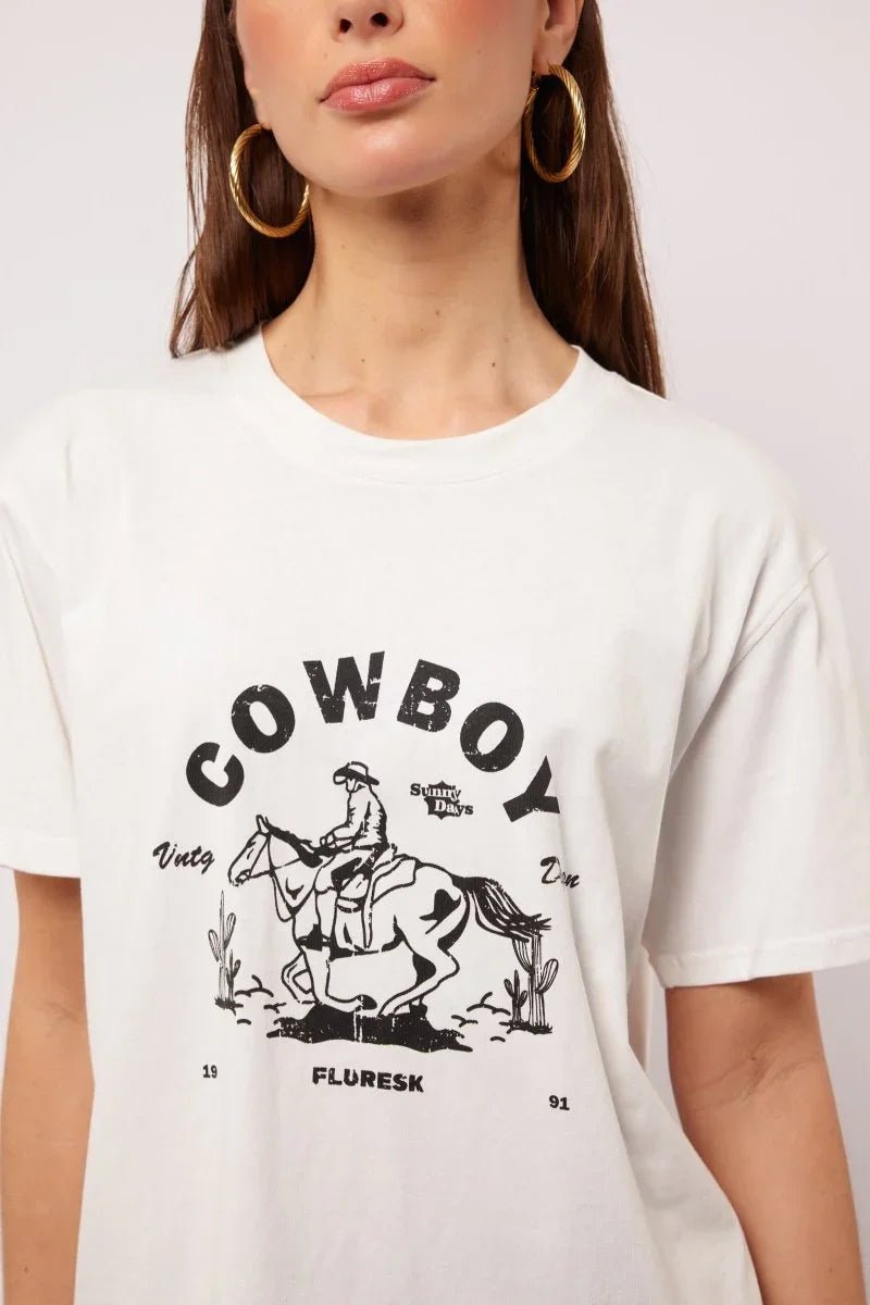 Marin T-Shirt – Vintage Cowboy Print T-Shirt van Fluresk
